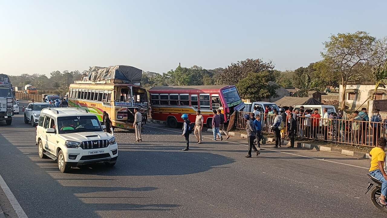 গরুকে বাঁচাতে গিয়ে মিনিবাসে ধাক্কা বড় বাসের, আহত একাধিক যাত্রী